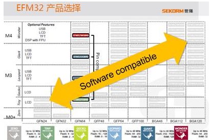 图2. 世强提供丰富的EFM32产品选择和技术支持。