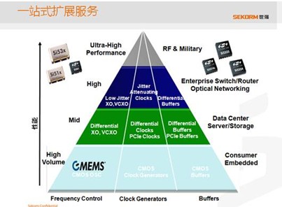 Silicon Labs时钟产品集包含所有构建强大、可靠的系统时钟树所 需的模块。如下图8所示,世强提供一站式时钟产品的采购。“从图中的金字塔可以看到,除了顶尖的产品,比如原子钟、铯子钟,TXO、UXO目前还没有涉 及,而像去抖时钟,XO、VCXO,包括X86的时钟等,世强都能提供,您只需要告诉我们你的时钟频点参数需求,剩下的我们帮你完成!”Silicon Labs高级现场应用工程师罗林全表示。