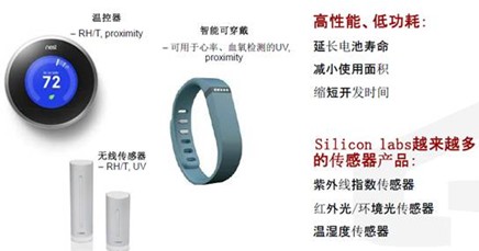 如果说MCU是物联网中控制系统的大脑,那么大脑将要通过各种各样的传感器来获得数据。Silicon Labs的传感器目前涵盖温湿度,红外接近,环境光,手势感应,电压电流,以及全球首款单芯片紫外线传感器等,能满足众多的物联网传感器需求,并且新产品还在不断推出。