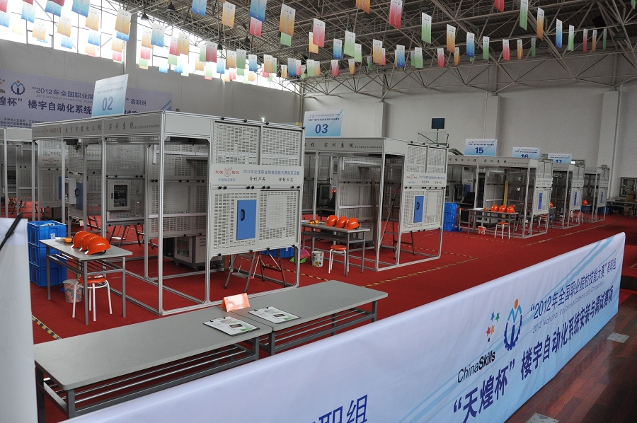 2012年6月9日 2012年全国职业院校技能大赛高职组“天煌杯”楼宇自动化系统安装与调试赛项在浙江机电职业技术学院举办。本项比赛面向高职院校“电气自动化”、“楼宇自动化工程技术”、“计算机控制技术”、“机电一体化技术”、“建筑电气”等专业学生。 统共52个代表队,共156人参加该赛项。
