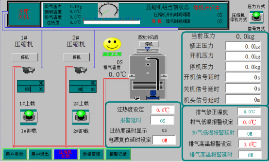 (5)PLC控制器根据回气压力调整开机台数,均衡系统机组负荷,保持最高的使用效率。PLC控制器可设置最佳运行曲线(电网的峰谷及低谷),为终端用户节省大量电能;