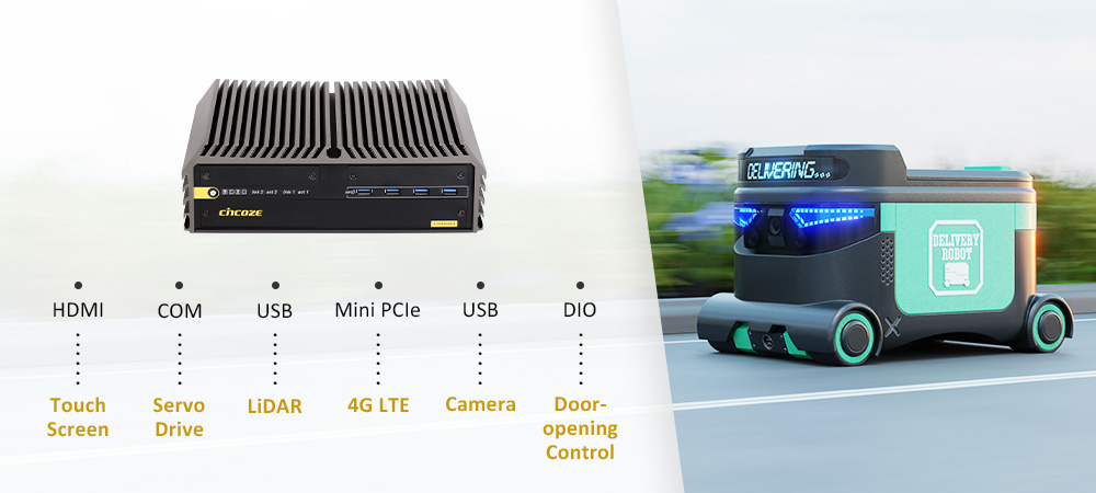 配送机器人有许多必须连接到电脑系统的传感器及组件,包括前后方的雷达、多个镜头组成的环视方案,以及控制移动、开启箱子、讯号显示的多种电机控制组件。身为核心的嵌入式电脑必须要能够整合并连接到这些组件。
