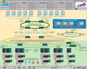为了满足生产工艺各项控制功能要求,确保高炉安全生产,项目采用两级自动化控制系统,完成对高炉主工艺线及主要辅助设施的控制。第一级为基础自动化级,由电气传动自动化和仪表自动化系统组成,主要完成生产过程的数据采集、数据显示、执行对生产过程的连续调节控制和逻辑顺序控制、设备状态监视及故障报警;第二级为过程控制级,主要完成数据处理、数据库建立和生产报表的管理与打印,完成与其它计算机进行数据通信等工作。工程选用了PCS 7控制器15套,其中417H冗余控制器4套,共计近8000点I/O。基于PCS 7这个核心支柱,承钢遵循了西门子公司全集成自动化TIA的理念,在PCS 7这个高度集成和开放的领先平台之外,配备了SCALANCE系列的网络产品,网络层主干环网为千兆以太网。系统主要包括冗余AS控制器4套,标准AS控制器11套,具有热插拔功能的ET-200M单元62套,SCALANCE各系列交换机21台。