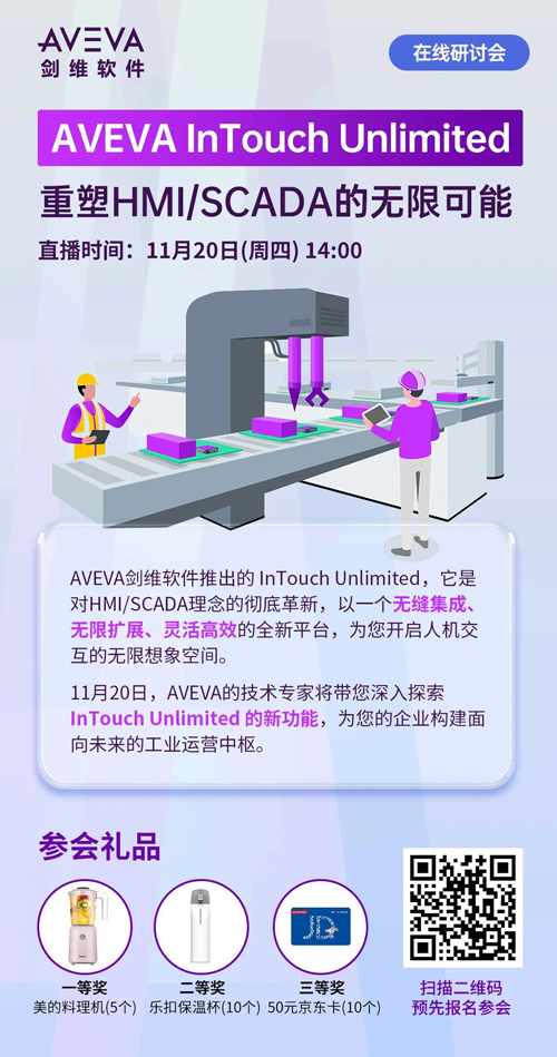 11月20日,AVEVA的技术专家将带您深入探索 InTouch Unlimited 的新功能,为您的企业构建面向未来的工业运营中枢。