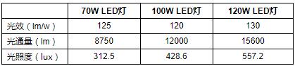 表3 单位面积光照度