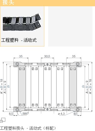 1.内外链节设计保证直线运动 2.通过具有“制动器“的限位开关来降低噪音 3.当剪切力在起作用时,“舌 - 榫设计”能提高强度以及承载力 4.(与旧型最好的E4系列相比)通过提高限位块半径的设计,增强15%的抗拉强度,增长架空长度 5.横杆可沿拖链的两侧拆卸 6.圆滑宽塑料横杆 - 有效保护电缆 7.优化侧向滑行模块 - 增长使用寿命 8.光滑的外侧板,可抵抗污垢 9. 多种内部分隔方案 10.可在接头上装配去应力分隔片以去除应力 11.接头可转动,在所有端面均有安装孔 12.还可提供反向弯曲半径 “ RBR ” 型拖链