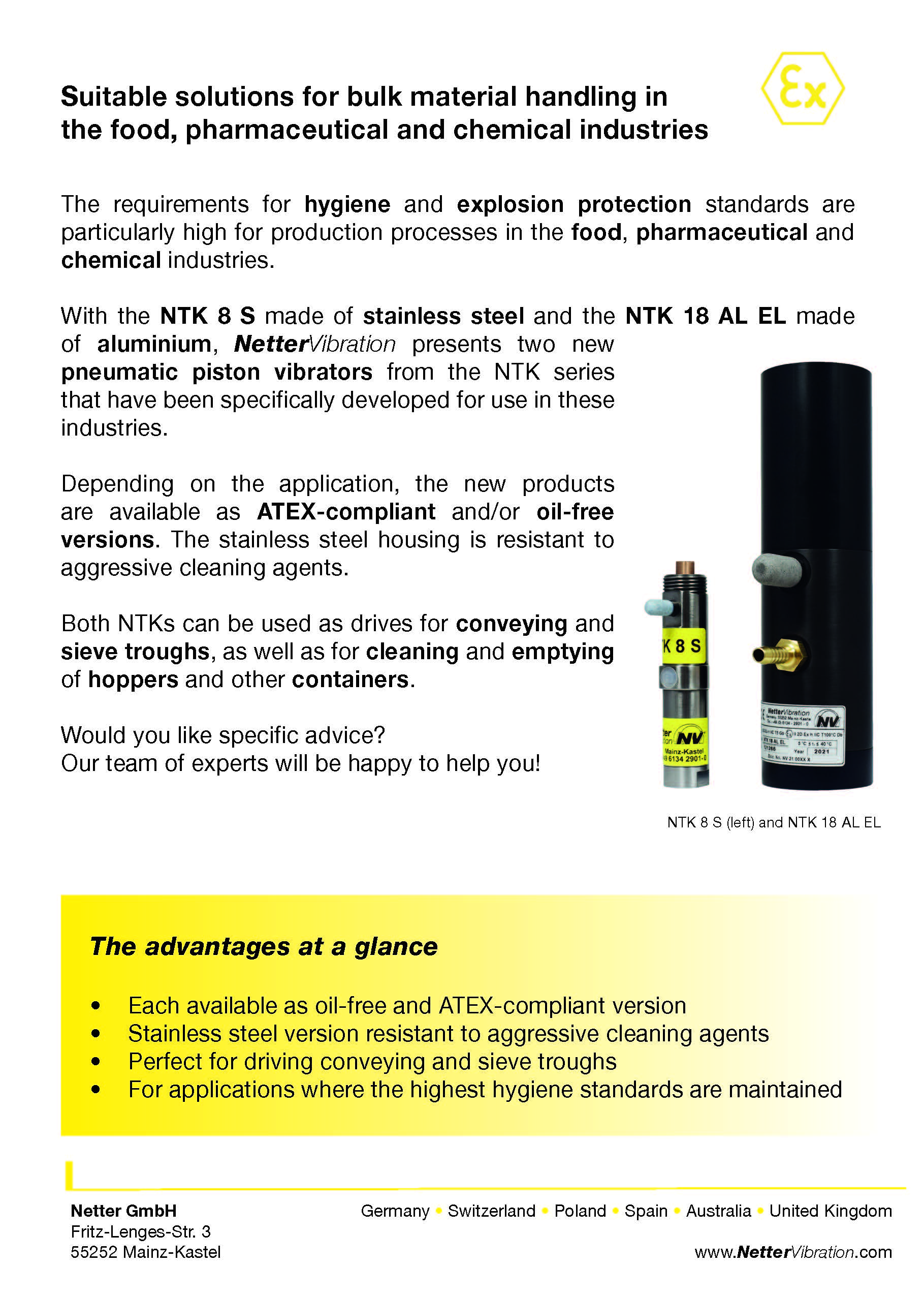 NETTERVIBRATION公司主要活跃于震荡器技术领域.从1953年开始给建筑工业提供震荡器。后来供应范围发展到其他领域,如化工、机械工程和