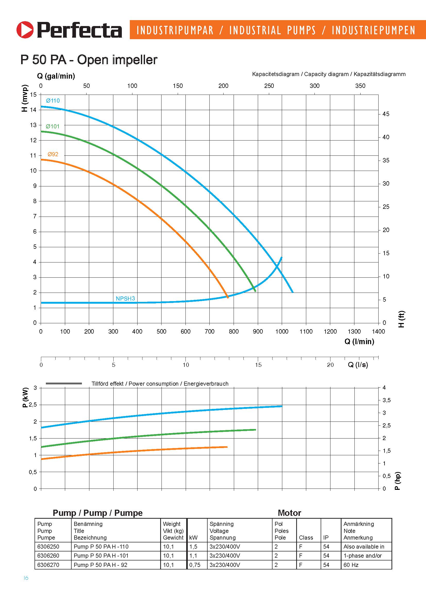 Perfecta泵PumpP50SSH-98-1,1kW1x220V50HzARTNR:6306290