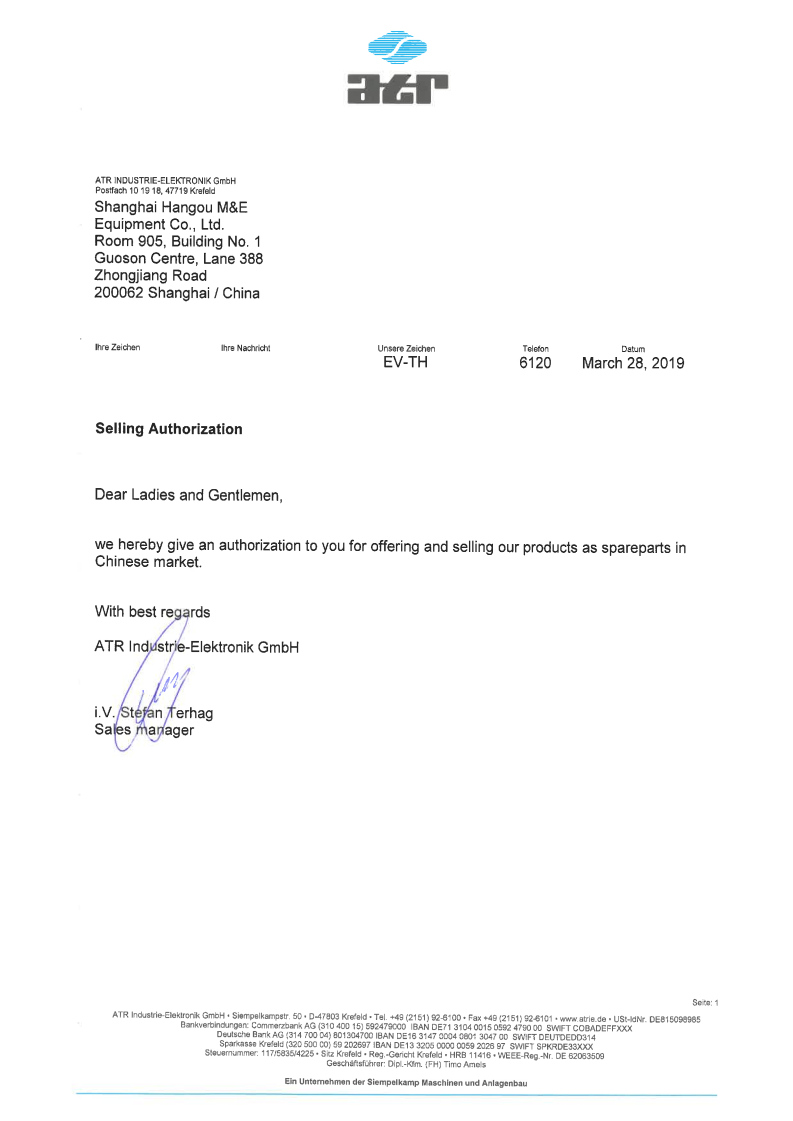 2019年,ATR工厂正式授权上海航欧为其中国区销售代理