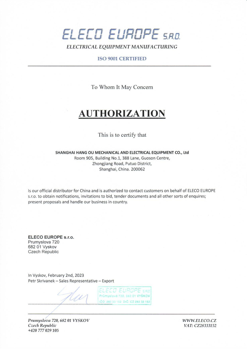 2023年ELECO工厂正式授权上海航欧为中国区代理