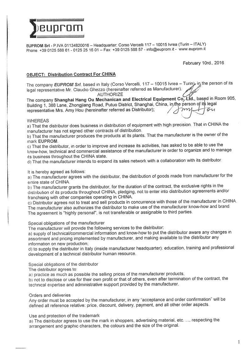 2016年EUROGI与EUPROM中国区销售 – 上海航欧