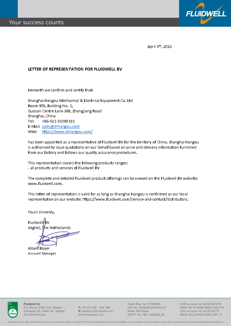 上海航欧 — FLUIDWELL 中国区授权代理 (2023)