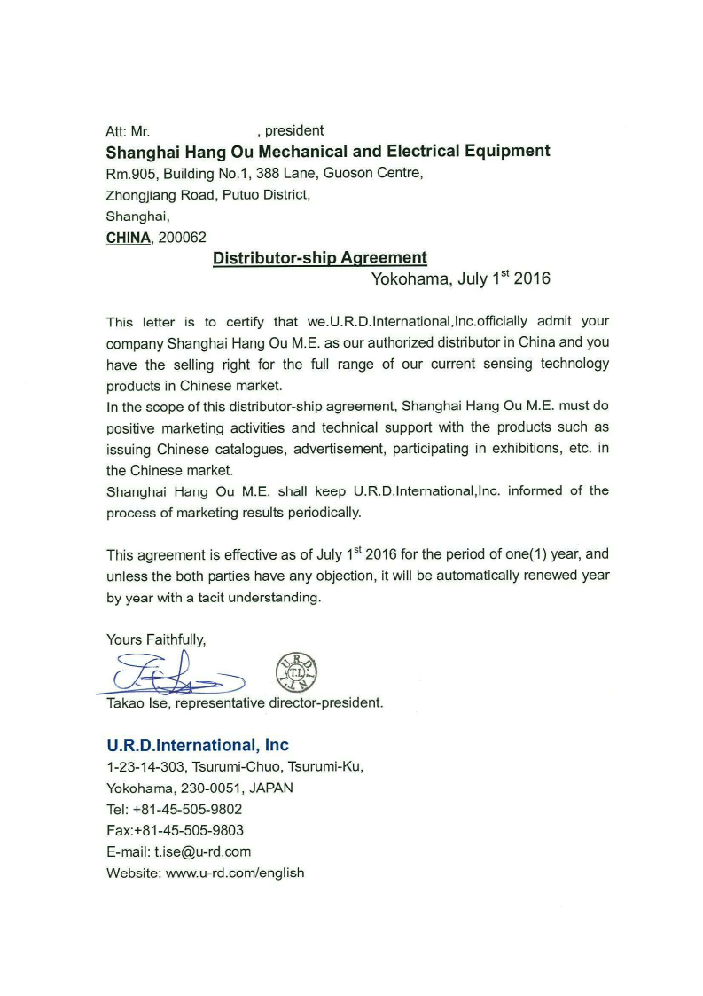 URD International, Inc. 作为日本U.R.D.公司的全球独家出口商,在电流传感器领域是专业的设计和制造商。