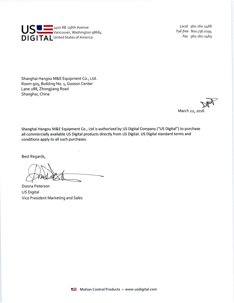 自2016年起,上海航欧正式成为USDIGITAL品牌的中国区授权销售合作伙伴。