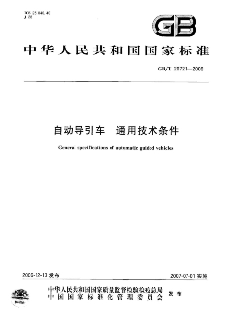 ●GB/T 20721-2006 自动导引车 通用技术条件