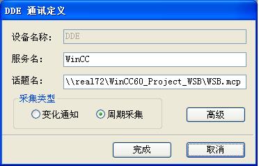 填写完成如上设置。这样在WinCC工程运行之后就可以使用打开的“DDE服务”对话框中选择所要共享的数据