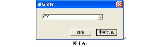这时如果紫金桥软件一侧配置完成了,工程正常运行,那么点击刷新列表就可以把紫金桥软件里组态的驱动设备名称在下拉框里刷新出来,选择需要使用的驱动设备名称点击确定。