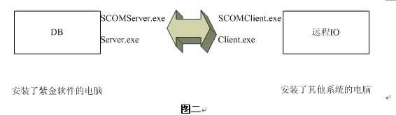 远程IO就相当于紫金桥的IO模块,使用时把它放到提供数据的远程系统所在的机器上,这样紫金桥软件的IO通讯模块就延伸到了远程机器上,远程IO驱动程序在远程系统上采集到数据后,再提供给紫金桥软件的实时数据库DB。二者正常通讯时,紫金桥软件和远程IO是使用内部的通讯协议进行通讯。如果是通过以太网方式是通过Server.exe即网络服务器和Client.exe即网络客户端两个程序进行数据交换;如果是通过串口方式是通过SCOMServer.exe即串口服务器和SCOMClient.exe即串口客户端这两个程序进行数据交换。这样只要在紫金桥软件了正常建立驱动设备(当建立设备是要勾选使用远程IO)在数据库里正常建立点,组态相应的外部连接,就可以实现和提供数据的远程系统的通讯。下图是系统原理图: