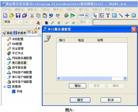 在开发环境下公共/串口服务器,双击弹出如下对话框: