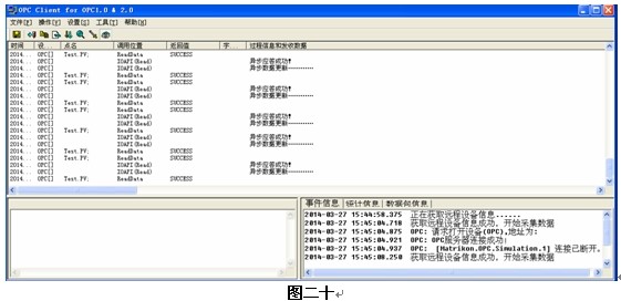 这时如果紫金桥软件已经运行可以直接运行远程IO驱动运行程序(这里是以OPC_Client.exe为例)。否者,就先运行OPC_Client.exe然后运行紫金桥软件,然后观察是否通讯正常。下图是正常通讯时的网络服务器和OPC_Client.exe的运行窗口截图: