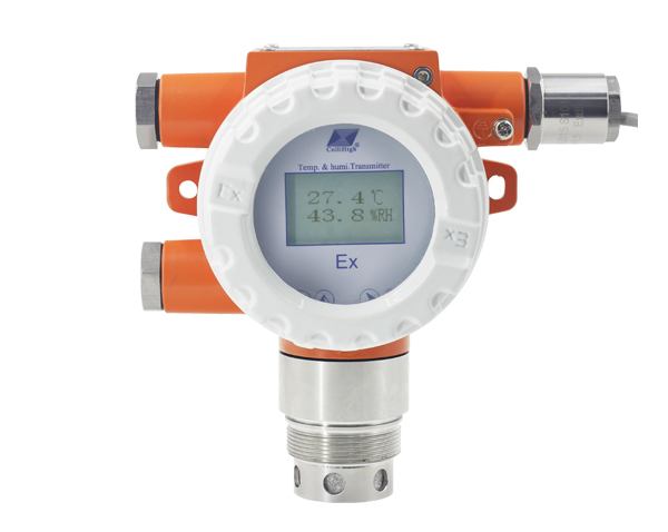 隔爆型温湿度变送器采用全密封隔爆壳体设计使得产品外观简洁、美观,IP66高等级外壳防护,不惧粉尘和外物侵入,任意角度有压喷淋无影响,工业级品质,适合防水防尘的工业现场,保证产品的实用和稳定。