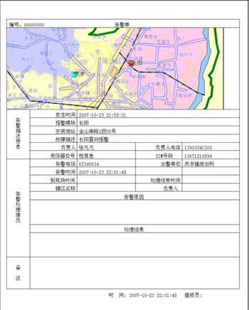 这个告警单将对报警的整个处理过程进行闭环管理,该报警单可存储在电脑数据库中,可用于日后的管理查询。同时,可打印出来,作为文字档案备档。这样整个的报警过程和出警处理过程都可管理、可追踪、可查询。