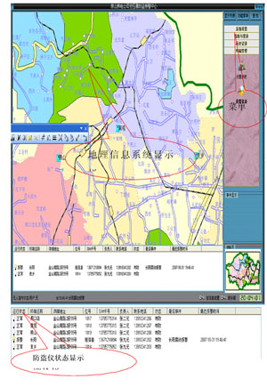 主要包括:地理信息系统显示栏、菜单选择栏、报警仪状态显示巡检栏。可以直观显示管理区域的电子地图全貌,以及各个防盗仪安装的变压器所在地理位置,同时可循环显示各个防盗仪的工作状态。