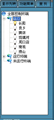 在主界面的菜单选择栏中点击“显示列表”按纽,将显示所有的变压器防盗仪的名称,并可显示状态,如有报警则相应的防盗仪的位置将变色。如图所示: