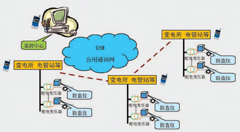 GN-6000变压器防盗仪及监测系统由防盗报警终端、GSM公众网和接警中心三部分组成。