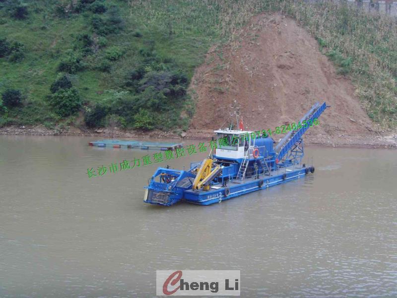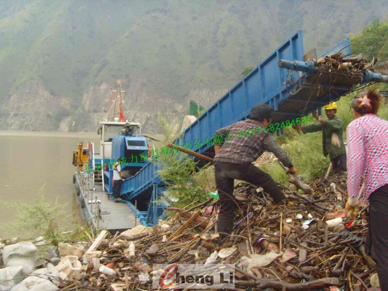 • 龙滩水电使用长沙成力水面环保设备  2000年开工建设的龙滩水电工程为我国开创了多个世界第一,是我国在红河水开发的第一水电工程,开工建设以来,水面环保一直是公司高层高度关注的问题,在过去长期以来对水面垃圾是采用的直接排放,对下游的水面环境是一种污染,影响到和谐社会的建设,容易产生各种纠纷.人工打捞垃圾对这重大型水电工程来说效率太低同时又是不安全生产的一个重大隐患,20个工人人工打捞一天有时还没有上游来的垃圾多,造成库区水面垃圾越集越多,花费大量人力物力却得不到好的效果,2006年公司在多方考查,调研后.通过招标的行式.引进了长沙成力重型数控设备有限公司的全液压水面环保清洁船.(清污1)经过一年的使用,现在已基本解决了水面垃圾对公司的困扰,两个船舶操作工人就解决了过去30-40人才能解决的大坝水面垃圾清扫问题.:“绿色龙滩,精品龙滩'这是公司领导提出的口号.经过多年的建设,这种精神已深入到每个建设者的心中,下一步在水面环保方面公司提出将水面垃圾清扫扩大到整个库区,为建设一个中国水电样板工程努力. 本公司引进国内外先进技术设备,与机械研究所,水利环保等单位共同研制的水面垃圾清扫设备有多个系列,不同型号广泛应用于,各种水面.是河道管理,水电站,水库库区水面环保垃圾清扫的理想设备  本型号采用渡轮式原理设计制作,双头型船首/一体型船身/艉设机舱/一体化控制/结构合理/性能稳  .  1:它的前端装有升降/收集/输送装置.在收集带的前端设计有摆臂,扩大垃圾清扫面积,提搞效能  2:该设备中部/后部是垃圾存放舱,同时该舱底部是传送带.后半部垃圾舱装有液压举升装置可调节高  ,在传送带的配合下能把垃圾传送到岸上或者别的转运船上方便灵活,水面环保垃圾清扫效能大大提高.  3:前进动力采用卧式轮机轴驱动,液压舵操作设备前进,停止,后腿,左右转向三档作业,安全方便  4:总个设备各种动作采用全液压操作,动作稳定可靠安全性能优越.  5:设备所有操作都集成在设备驾驶舱,一个人就能完成所有的操控  6:主要尺寸  船体总长:15.2M  船身长:10.5M  船体宽:4.05M  型深:1.3M  设计吃水:0.58M  排水量:32T  最高功率:75KW  工作船速:735KM/H  乘员:  2