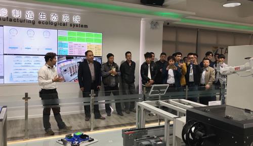 宜科公司技术总监邱昱坤先生首先带领大家参观了平台的示范产线,依次介绍了智能物流、数字化成型以及数字化装配三大功能区,并对其中的智能制造技术进行了讲解。