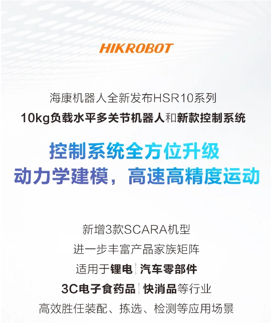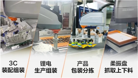 依托完善的产品矩阵与核心技术优势,海康机器人SCARA产品系列在3C装配/组装、锂电生产组装、产品包装分拣、柔振盘抓取上下料等多行业场景中持续发力,实现广泛落地。