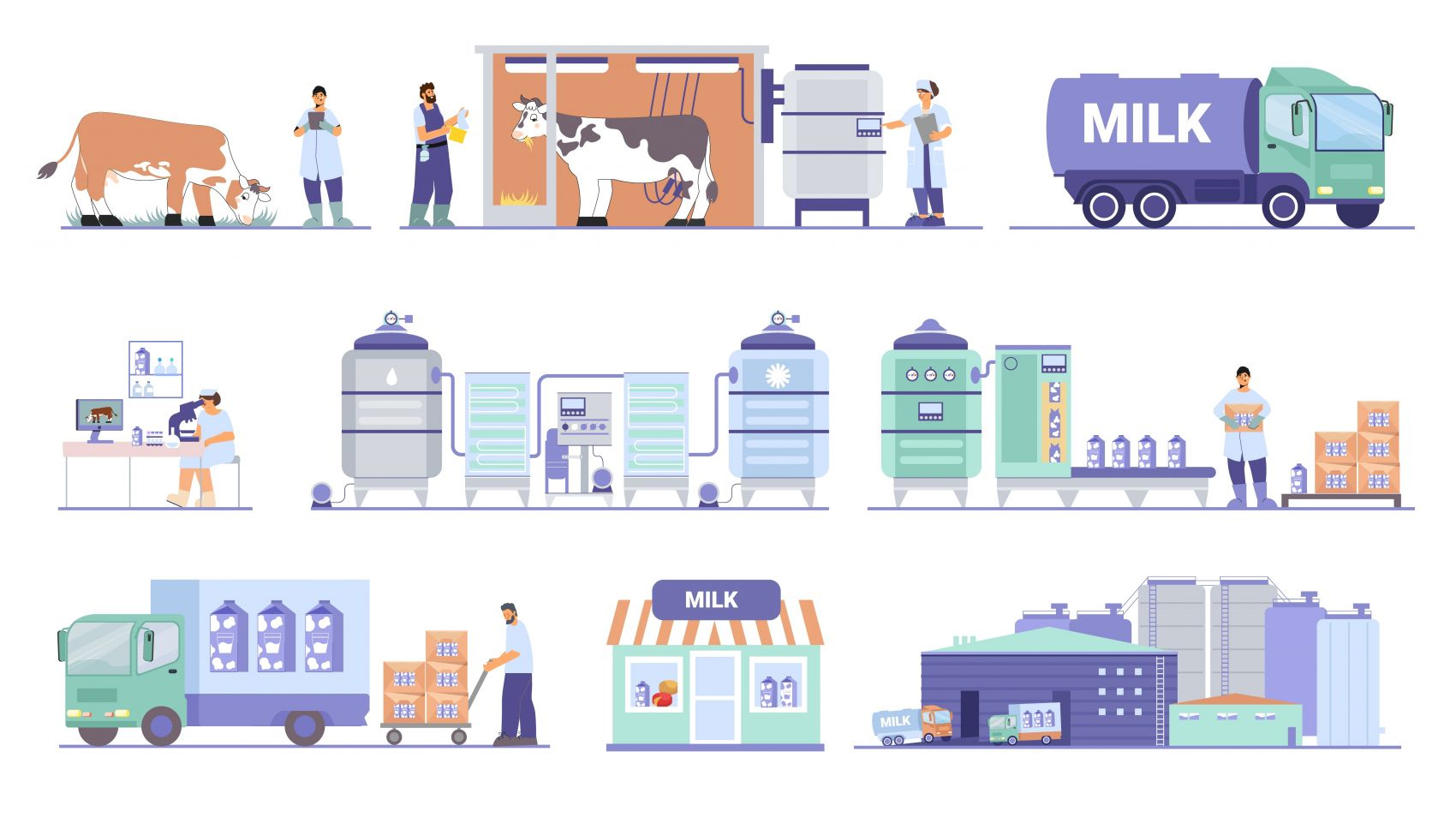 牛奶从农场运送到工厂后,进入预处理阶段。此阶段主要是对牛奶进行检测,去除杂质、细菌和其他有害物质。