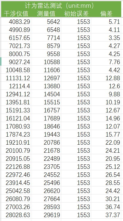 测试采用精密干涉仪作为参考标准,对 计为迷你雷达液位计 从零点到 26 米以上的量程进行了连续测量。测得偏差范围为 0~49.11 mm,在最长测试距离约 28.014 米时,偏差百分比仅为 0.76%,而全程平均偏差百分比仅约 0.24%,远低于行业要求的误差水平。