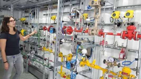 Netze BW 公司工程师 Daniela Wieland 解释氢气与天然气混合设备的工作原理。
