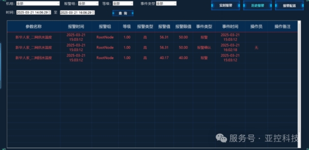报警管理子系统具备实时报警与历史分析双重功能:隔压站、大温差机组出现参数异常时,即时推送报警信息,助力管理人员快速处置;历史报警模块可按时间、机组、报警等级等维度统计分析数据,为设备运维优化及安全管控提供决策依据,筑牢运行安全防线。