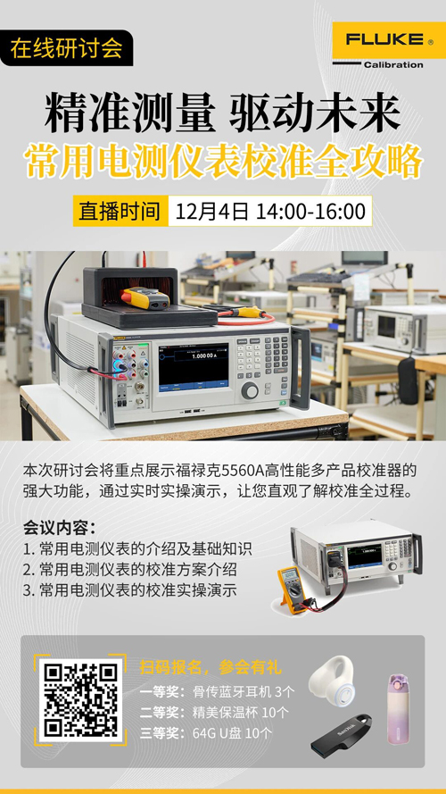 12月4日,福禄克计量校准部特别策划“精准测量,驱动未来:常用电测仪表校准全攻略 ”在线研讨会,特邀资深校准专家,带您深入掌握电测仪表校准的核心技术与实践方法。