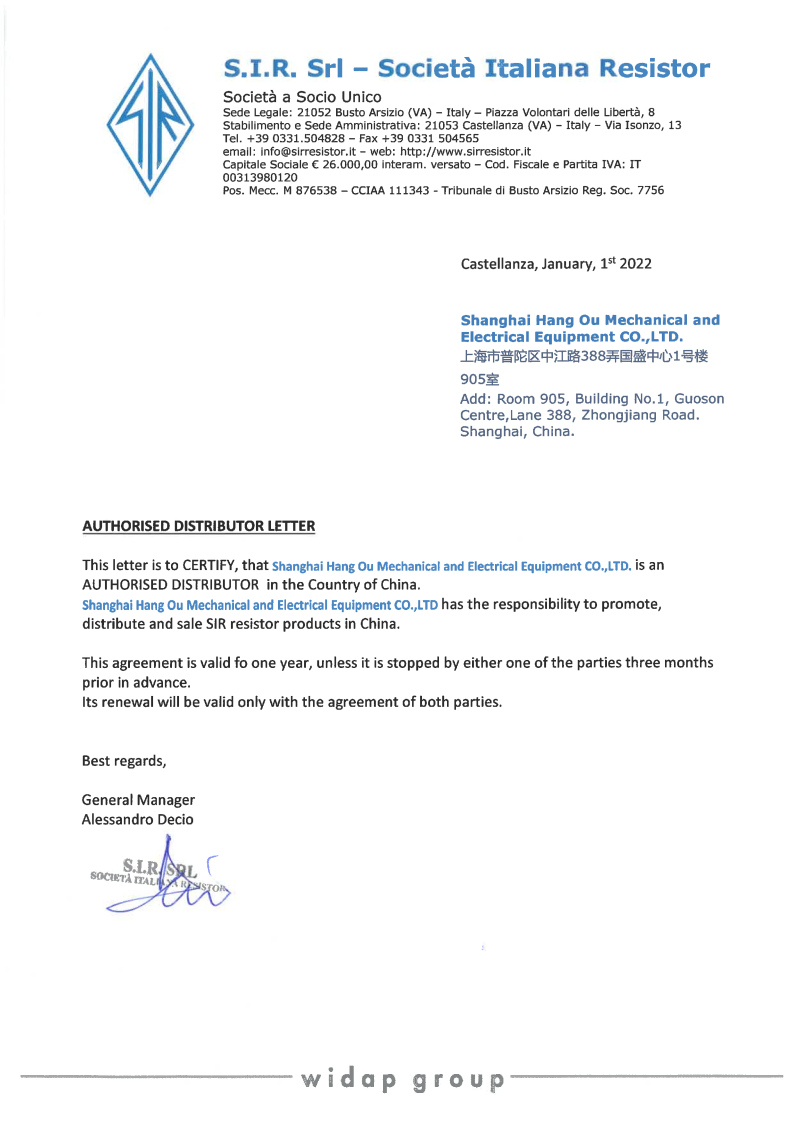 自2022年起,上海航欧机电设备有限公司正式成为SIR工厂在中国区的授权代理商,专业销售以下SIR产品: