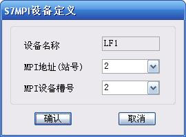 我们以1拉幅机为例,1号拉幅机的MPI地址为3,MPI设备槽号为3,以此依据更改该设置,然后点击确认。一个名字为“LF1”的设备就建立完成了。