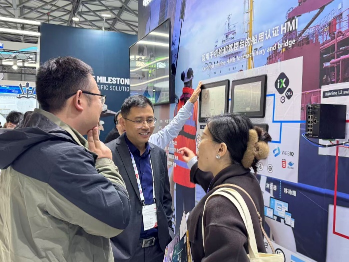 随着船舶数字化、智能化、网络化发展水平的提升,越来越多的控制系统、通讯导航系统、信息管理系统及设备不断接入船舶网络,围绕新设备、新系统接入和更复杂的信息交互,船舶网络安全面临的威胁日益严峻。本次展览中,北尔电子重点展示人机界面产品的端口管控功能和 iX 软件平台的身份认证与审计追踪功能等船舶网络安全解决方案,该方案能够针对性提供强大的网络安全功能,重点对应 IACS UR E27 及 IEC 62443-4-2 网络安全规范要求,搭配X3 系列内置的 TPM硬件安全芯片,保护船舶运行的安全和稳定。