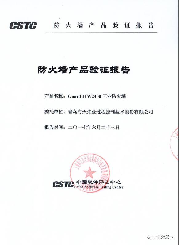 七月中旬,海天炜业收到CSTC(中国软件测评中心)的喜报,海天炜业Guard工业防火墙成功经受了功能验证、三个不同用户现场的渗透测试,并获得了产品验证报告。此次测试,再次用事实证明了Guard工业防火墙的工控网络安全防护实力。