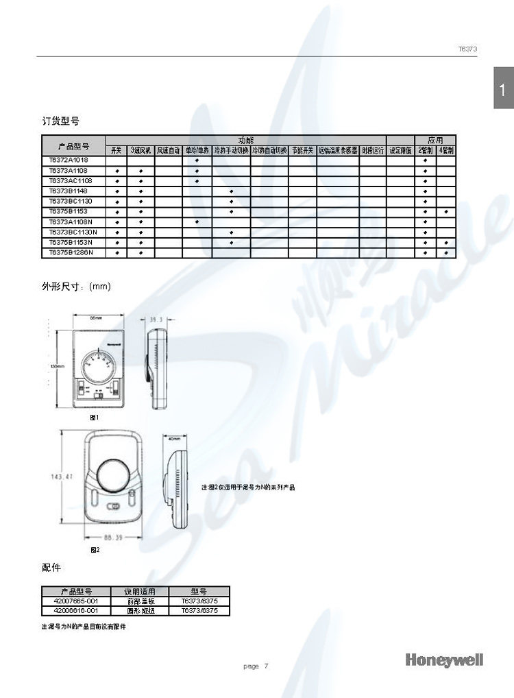 T6375B供暖/制冷,手动供暖/制冷切换,风机连续运行