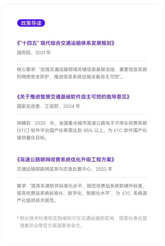 ……一系列政策无一不强调 ETC 场景的“自主可控”与数字化转型。