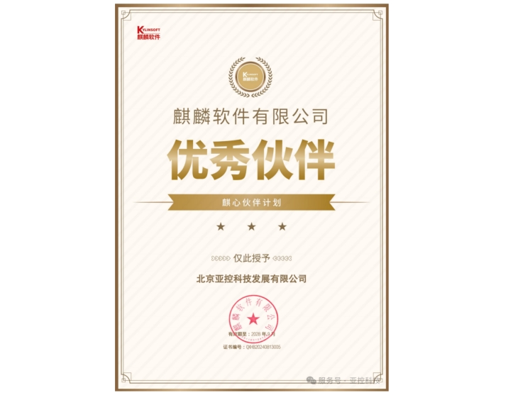 近日,亚控科技凭借在全栈国产化适配领域的深厚积累与卓越行业贡献,成功入选麒麟软件“麒心伙伴计划”,并荣获“优秀合作伙伴”称号。这一荣誉不仅是对亚控科技技术实力的权威背书,更标志着双方在工业信创生态建设中的协同合作迈入全新阶段。