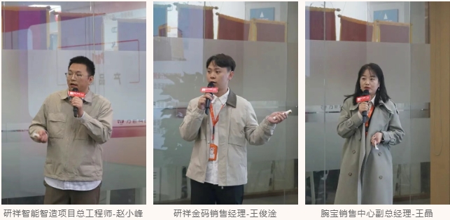 研祥智能物联业务以人工智能为共通脉络,将其全面融入各业务板块中。在业务介绍环节,研祥智能智造项目总工程师赵小峰、研祥金码销售经理王俊淦、腕宝销售中心副总经理王晶依次就工业智能、机器视觉与高端智能穿戴板块,阐释了AI技术与前沿实践的融合路径与创新成果。