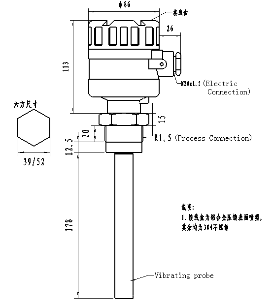 主要特点: 适应性强——与音叉物位开关相比单棒式探头能有效防止夹料和粘料,在较多挂料时,仍能稳定工作。与电容式物位开关相比不受被测介质电参数影响,物料品种改变、湿度变化不影响传感器工作。