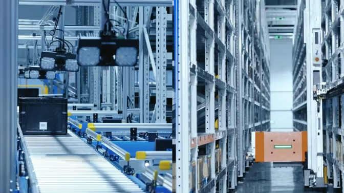 该智能硬件ODM企业在2560㎡的仓储空间,部署海康机器人STU料箱机器人、输送线及读码相机等设备,实现43000个库位数万种原料从中央仓到附件工厂的无人化自动出入库与精准补货。