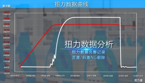 方案创新融合高动态响应伺服电机与AI控制算法,实现了“动态跟随式”旋盖——旋盖头可智能追踪流水线速度完成精准旋紧动作,单线效率提升15%~20%。更关键的是,方案还能实时采集每次旋盖的脉冲数、扭力值,生成“角度-扭矩”曲线进行监测、分析和完整记录,一旦发现由于歪盖、斜盖而导致的扭力数据异常,及时剔除不合格品;扭力数据还可进行追溯,从而实现“全过程监控”的质控模式升级。
