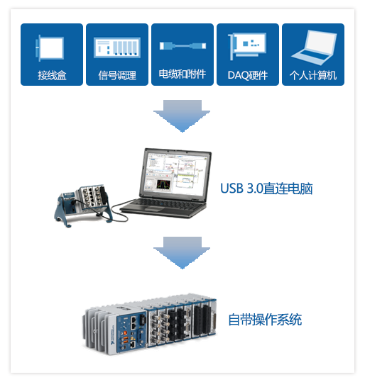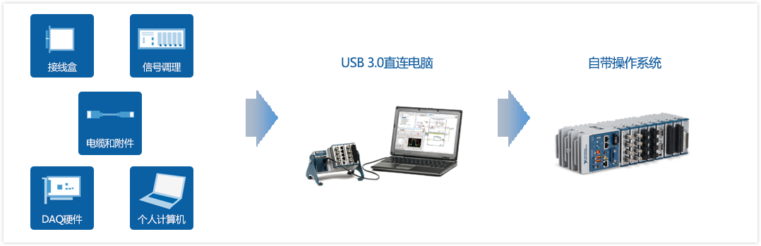 CompactDAQ是一个坚固耐用的便携式数据采集平台,它将连接和信号调理功能与模块化I/O相集成,可直接连接任何传感器或信号。无论是车载数据记录还是测试台测试,丰富的总线、机箱和I/O调理选项结合LabVIEW软件的可自定义特性,为中通道数应用提供了最佳解决方案。